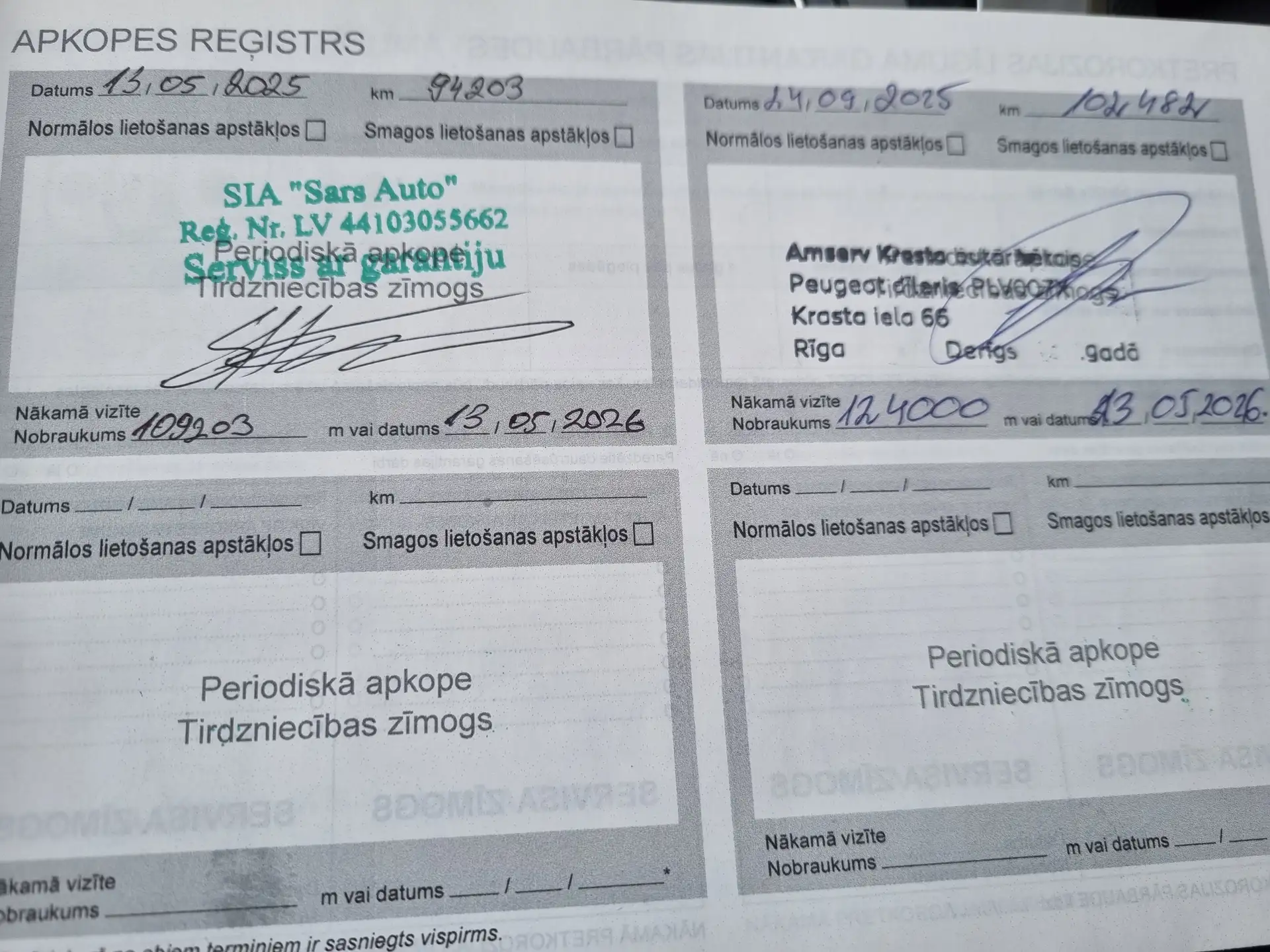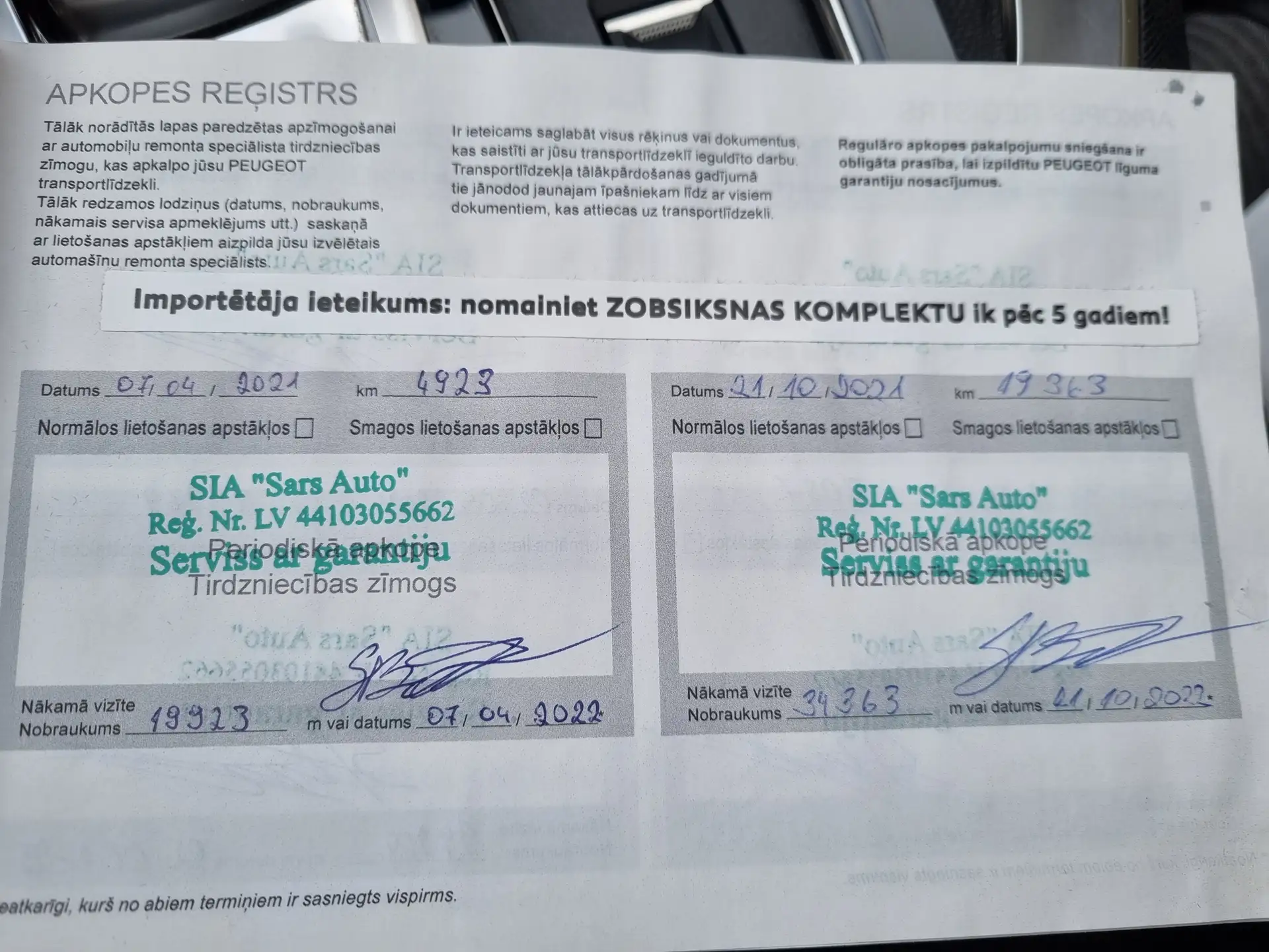 Auto parametri